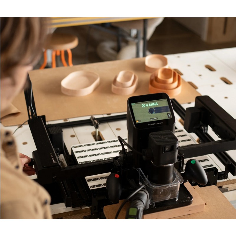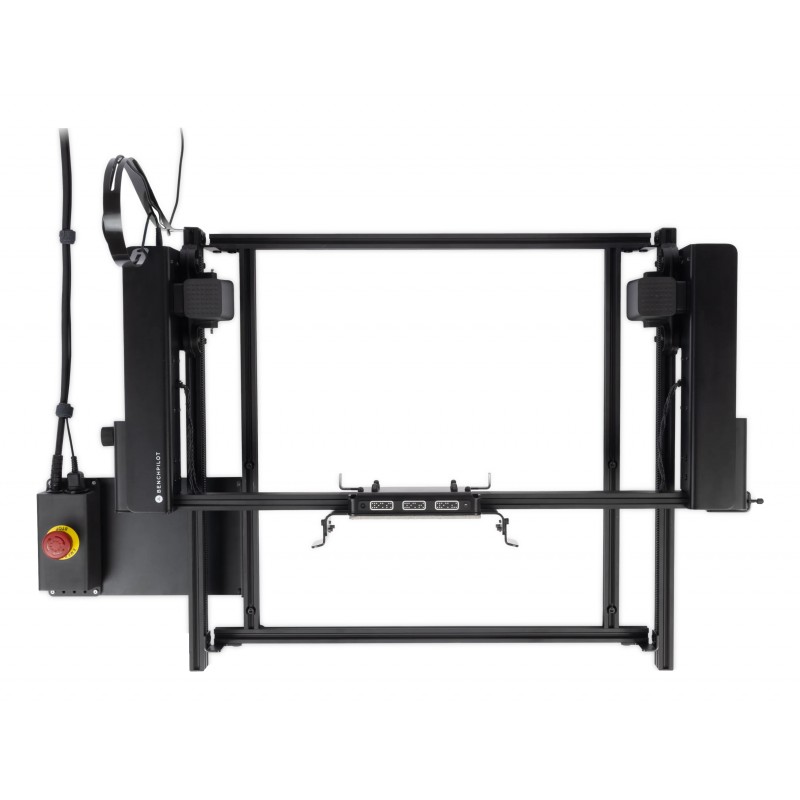 Le BenchPilot est un pilote automatique pour la fraiseuse portative Shaper Origin. Il automatise les déplacements d'Origin pour en faire une CNC fixe capable d'usinage horizontal ou sur chant, tout en conservant la mobilité d'Origin quand on veut la désolidariser.