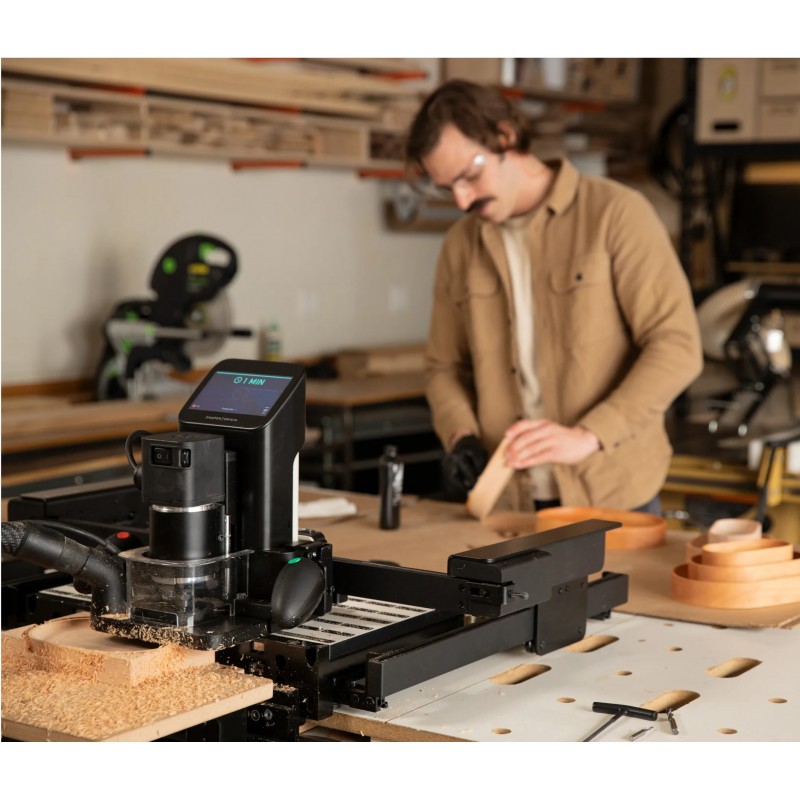 Le BenchPilot est un accessoire motorisé conçu pour transformer ta Shaper Origin (Gen1 et Gen2) en CNC semi-automatique. Il déplace Origin du point A au point B, tandis qu'Origin asssure les micro-ajustements de précision. Monté sur la Workstation ou directement sur ton établi, il permet des usinages de surface et sur chants (inserts, gravures, profilés). Idéal pour la production en série et les projets longs, sans logiciel complexe.