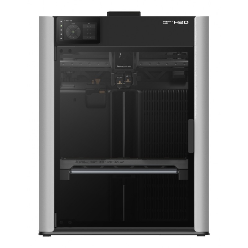 Volume maximal : La machine H2D offre un volume de travail et d'impression de 350 x 320 x 325 mm. C'est le plus grand espace de création des imprimantes Bambu Lab pour réaliser des grandes pièces en une unique impression