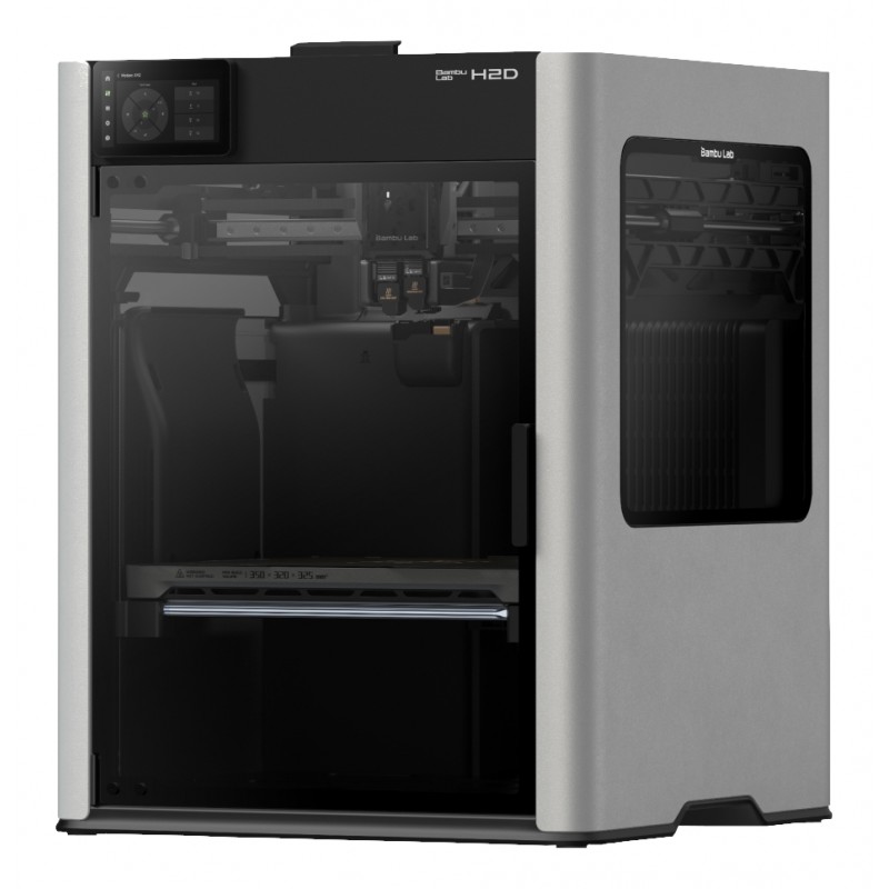 La H2D est la nouvelle génération de machines 3D de la marque Bambu Lab. C'est une véritable plateforme de fabrication personnelle proposant l'impression 3D avec une double tête mais aussi la découpe et gravure laser et la découpe à lame et le dessin.
