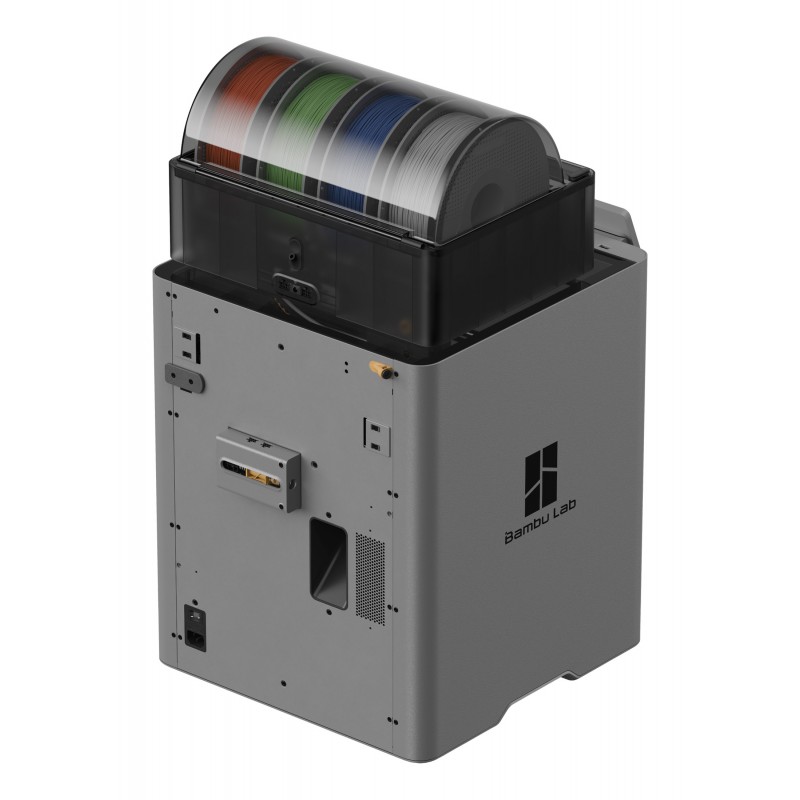 Impression avec des matériaux spéciaux : L'imprimante P2S Combo peut imprimer avec des matériaux spéciaux comme le Nylon, le Polycarbonate et les filaments chargés fibre de verre et fibre de carbone. il est recommandé d'utiliser l'AMS HT (Automatic Material System - High Temperature) permettant de stocker et sécher ce type de filament. L'imprimante peut recevoir jusqu'à 4 AMS HT.