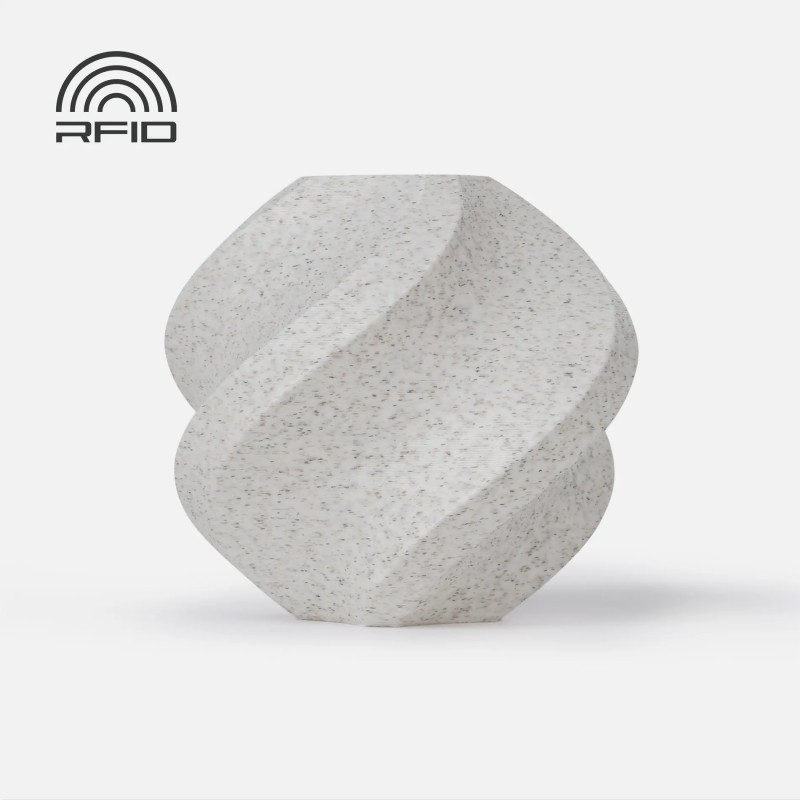 Comme tous les filaments Bambu Lab, il conserve la facilité d'impression du PLA, une excellente stabilité et une compatibilité totale avec l'écosystème AMS / AMS Lite. Sa formulation permet d'obtenir des surfaces homogènes, avec un effet pierre très convaincant, sans nécessiter de post-traitement complexe.