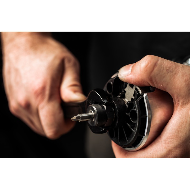 Grâce à ses deux dents et sa fabrication en carbure monobloc, elle conserve un tranchant durable, tandis que sa pointe moins profonde améliore encore sa longévité.