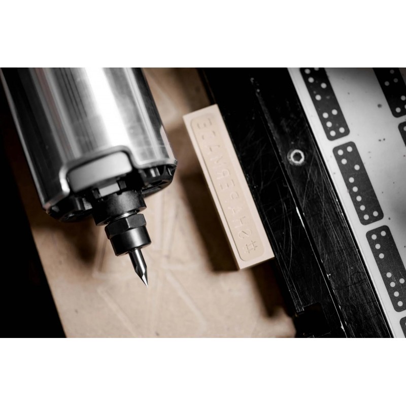 Avec sa queue de 6.35 mm (1/4"), elle nécessite l'utilisation de la pince de serrage 1/4" recommandée par Shaper pour garantir une tenue parfaite et une précision optimale. Fabriquée en carbure monobloc, elle conserve son tranchant durablement, même après de longues sessions d'usinage.