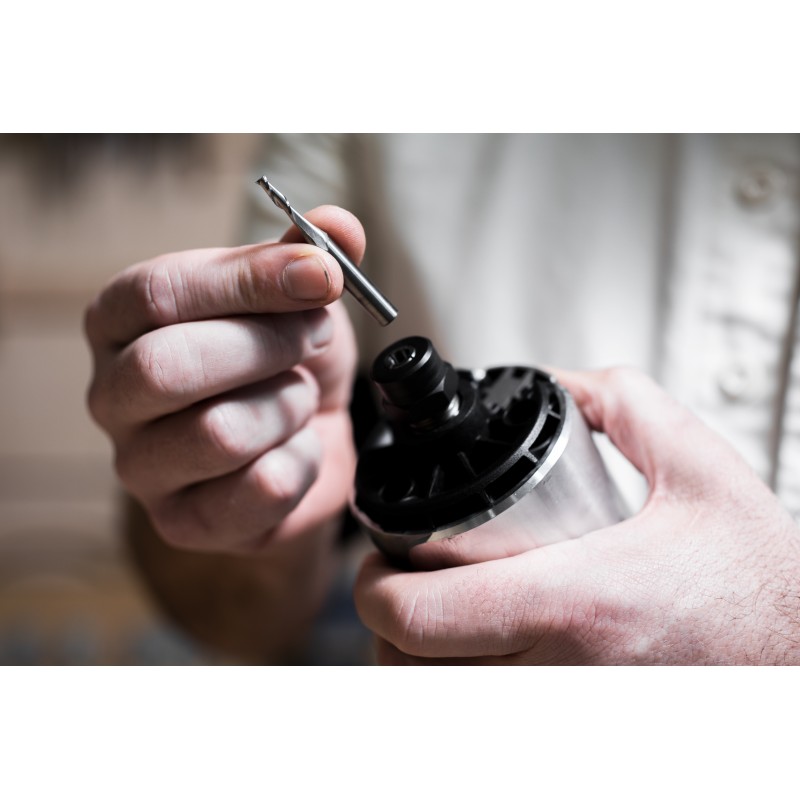 Avec sa queue de 6.35 mm (1/4"), elle s'utilise avec la pince de serrage 1/4" recommandée par Shaper, assurant une tenue fiable et une précision optimale. Elle convient à une grande variété de matériaux : bois massifs, panneaux, plastiques et certains composites.