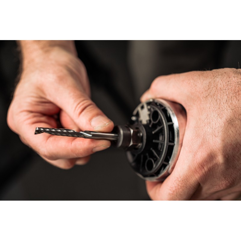 La surface polie empêche les copeaux de coller, ce qui améliore la qualité de coupe, réduit l'échauffement et prolonge la durée de vie de la fraise. Avec son simple tranchant, elle assure une évacuation optimale des copeaux, indispensable pour les matériaux sensibles à la chaleur. Sa queue de 1/4" (6.35 mm) nécessite la pince de serrage correspondante pour garantir une tenue parfaite et une précision optimale.
