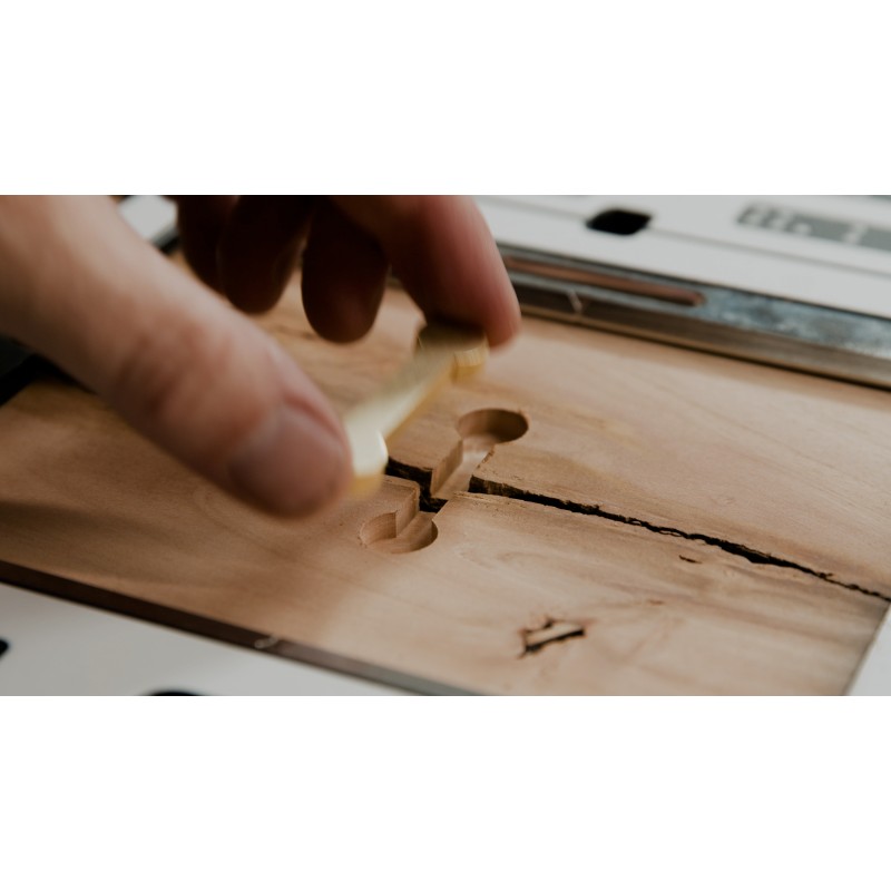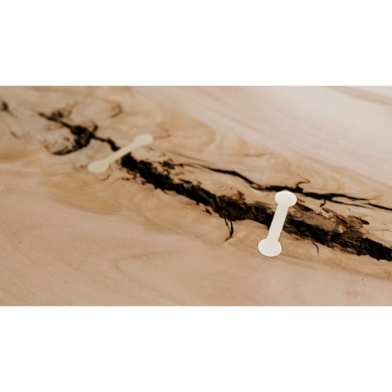 Raccords en laiton limitant la propagation des fissures tout en apportant une touche esthétique aux projets en bois massif.