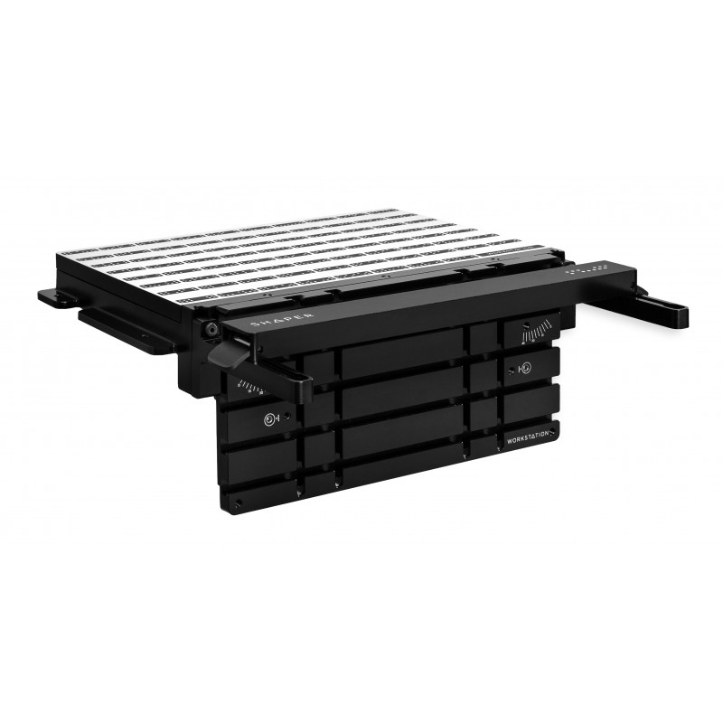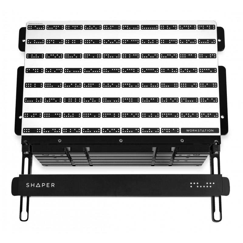 Grâce à sa surface équipée de rainures en T, ses supports réglables en hauteur et ses goupilles d'alignement, la Workstation assure un maintien fiable, même pour les petites pièces ou les formes inhabituelles. Le ShaperTape intégré garantit une reconnaissance immédiate par Shaper Origin, réduisant considérablement le temps de préparation et rendant le fraisage plus rapide et intuitif.