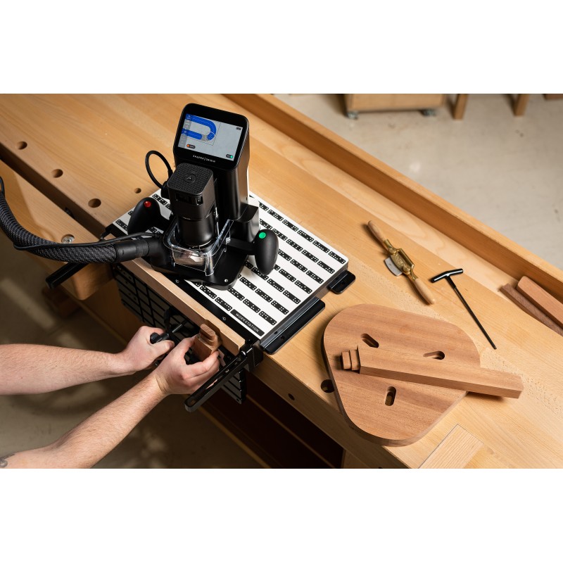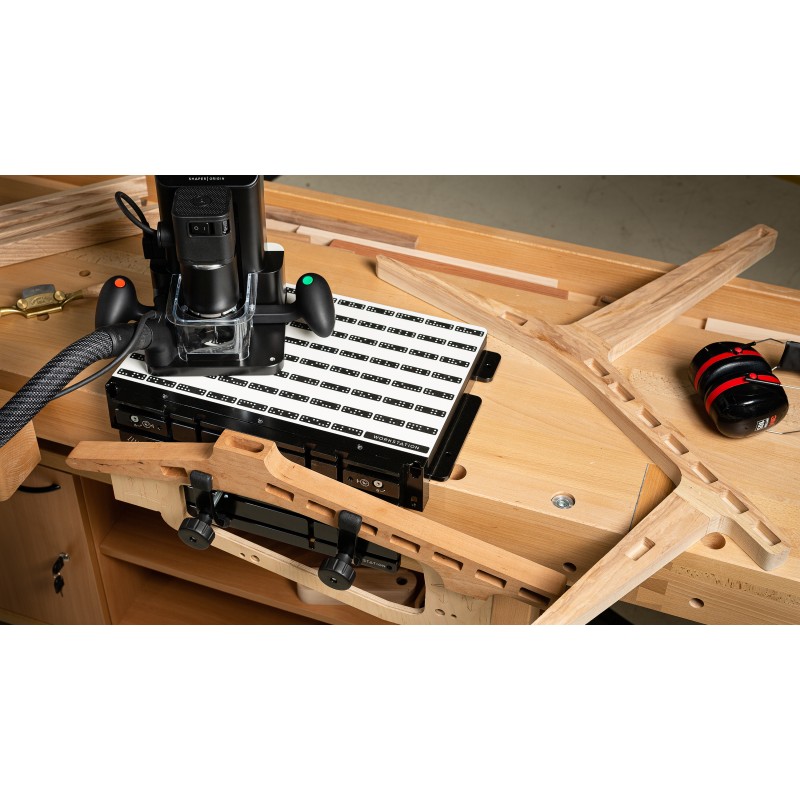 Table de travail modulable conçue pour optimiser l'utilisation de la Shaper Origin. Fixation rapide, précis pour travailler en toute sécurité, transforme n'importe quel établi en station d'usinage.