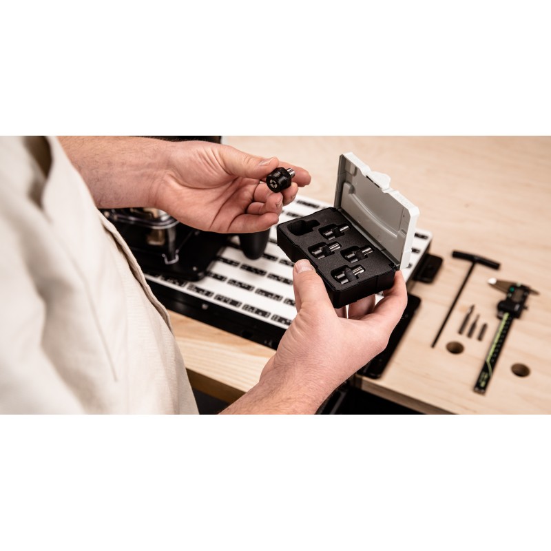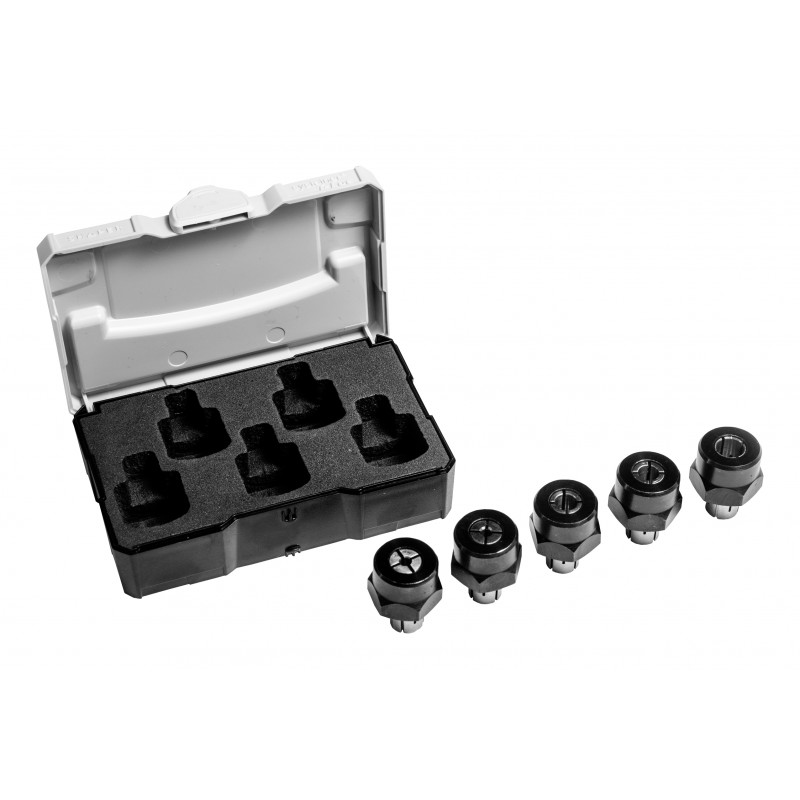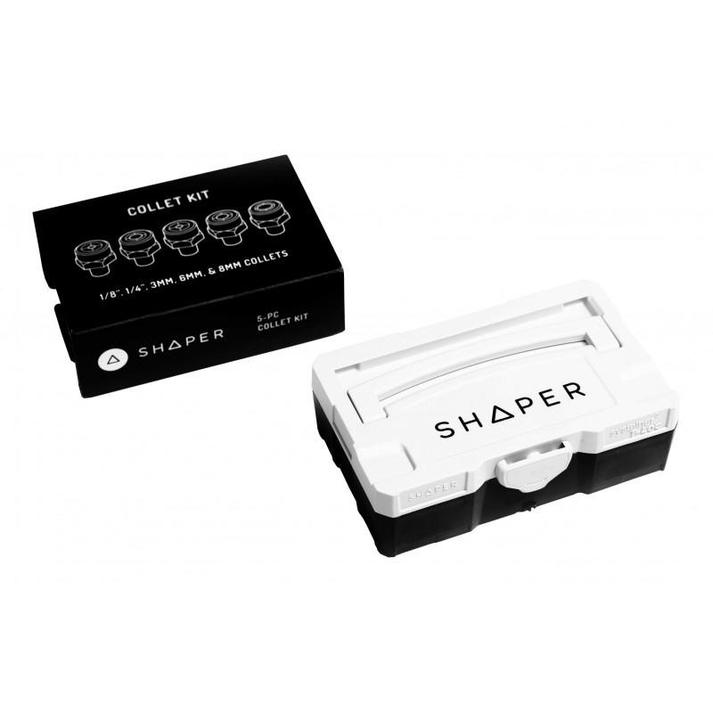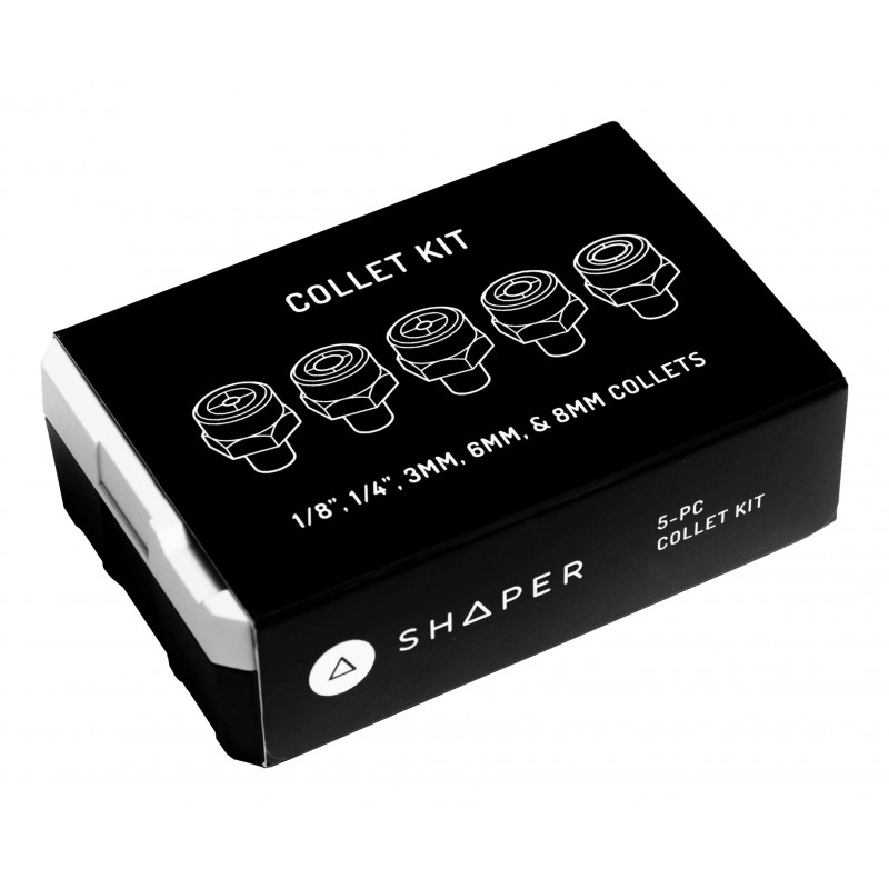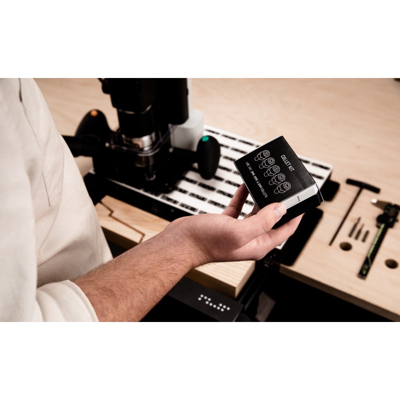 Jeu de 5 pinces de serrrage avec écrou, indispensable pour tous ceux qui souhaitent utiliser Shaper Origin. Elle permet d'exploiter une large gamme de fraises spéciales, y compris celles d'autres fabricants