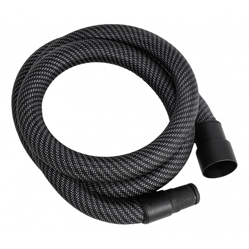 Tuyau d'aspiration léger, flexible et antisatique, avec gaine textile tissée et raccord conique compatible 27-32 mm. Longueur 2.5 m.