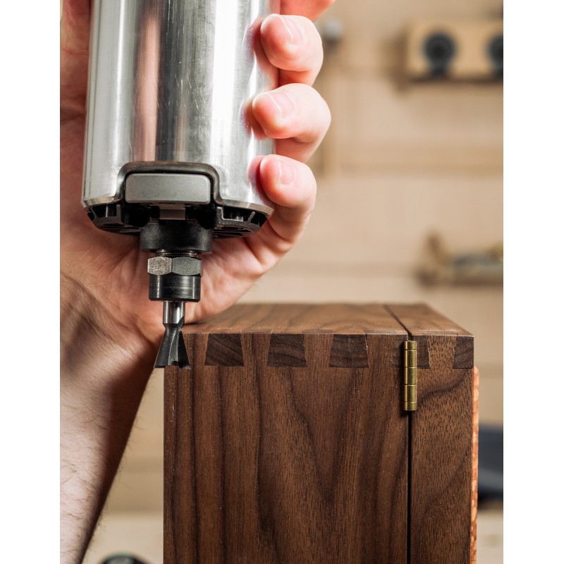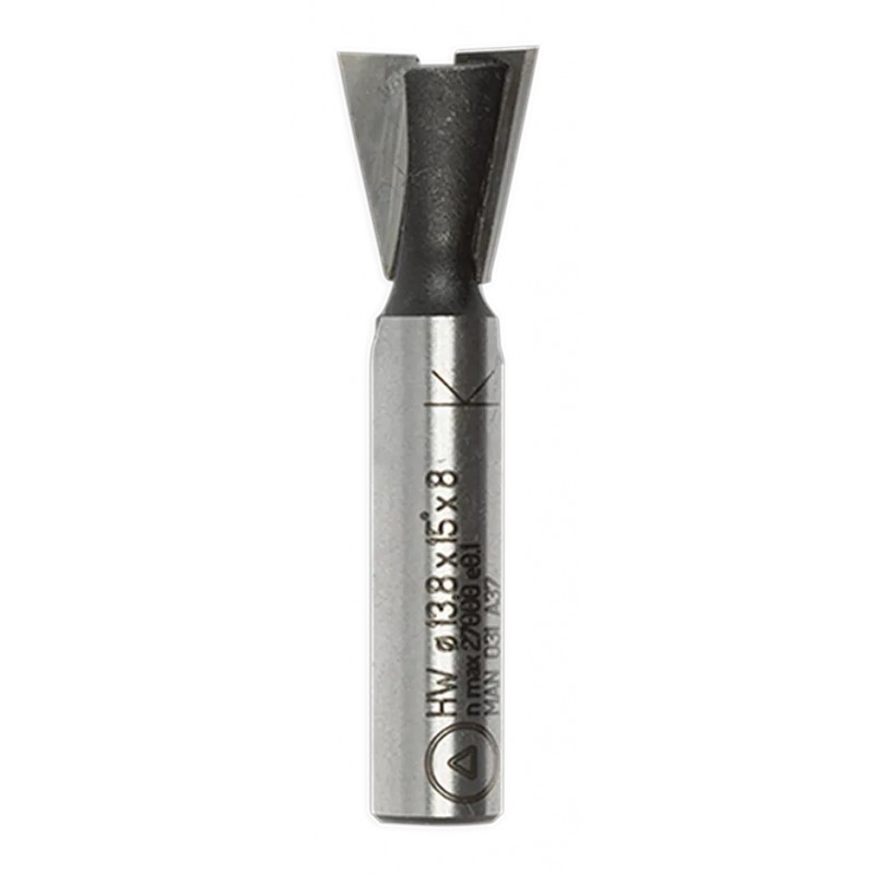 Fraise queue d'arronde 15° en carbure brasé, idéale pour les assemblages traditionnels, coulissants ou semi-couverts. Queue 8 mm compatible Origin.