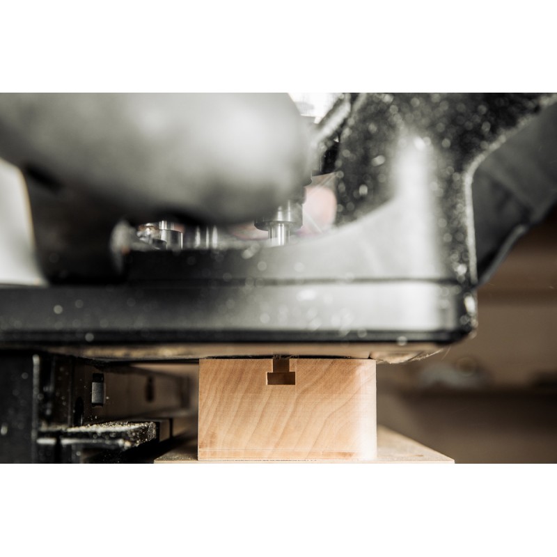 Grâce à sa géométrie spécifique et à son col de fraise de 6 mm, elle permet de créer des rainures fiables et régulières, parfaitement adaptées aux systèmes de fixation ou aux passages techniques. La queue de 8 mm assure une compatibilité directe avec le collet d'Origin.