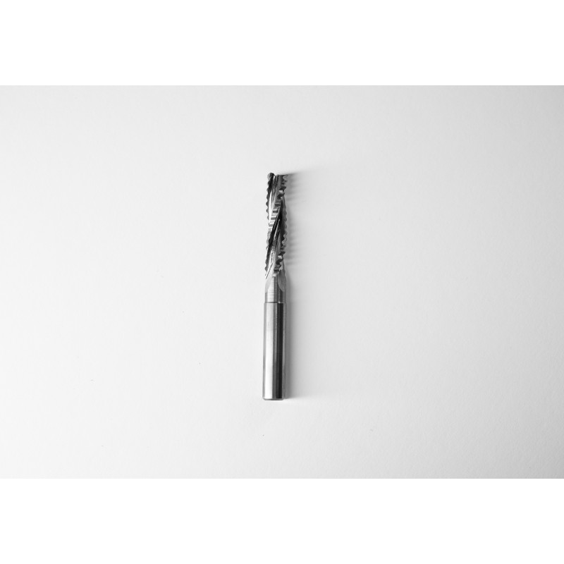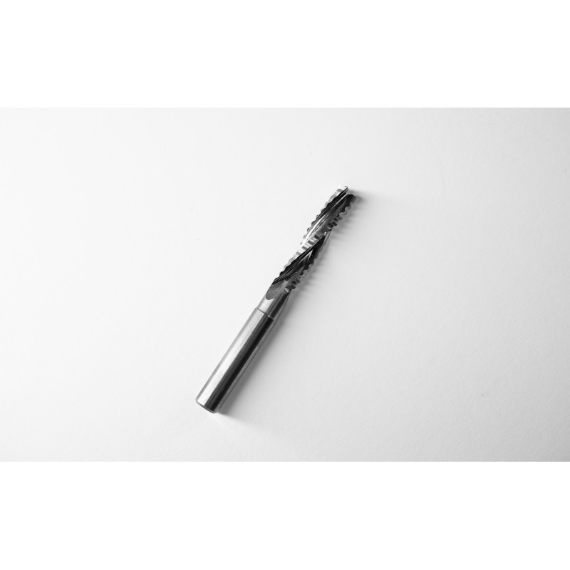 Fraise d'ébauche longue en carbure monobloc, conçue pour des passes rapides et profondes. Queue 8 mm compatible Origin.