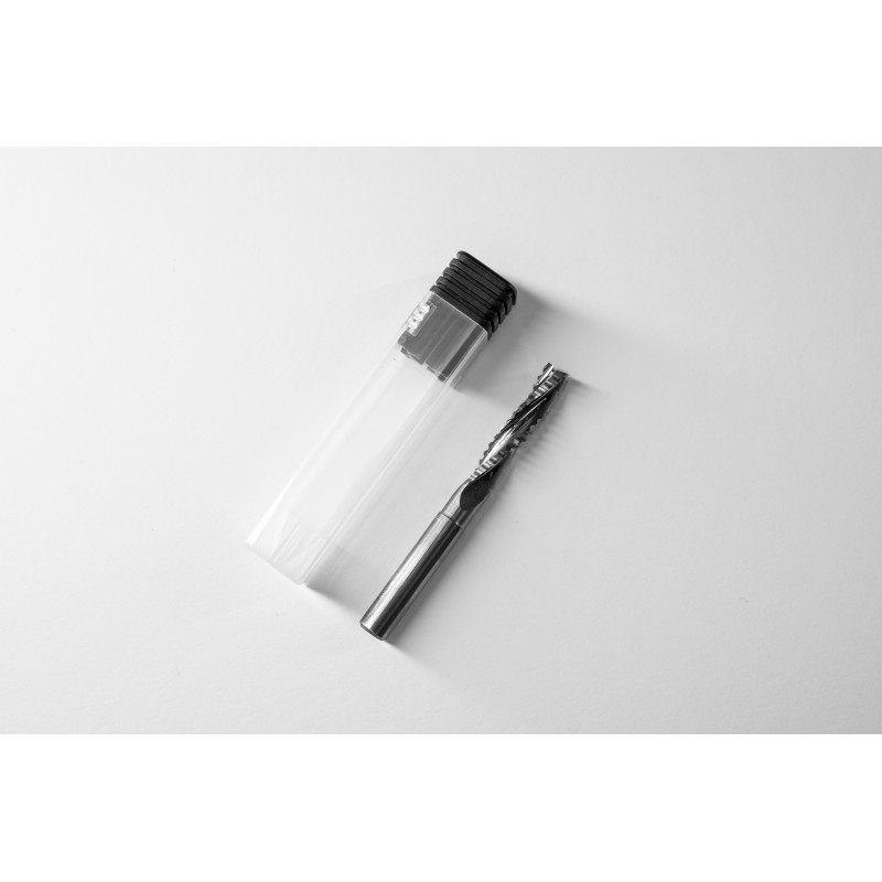 La fraise d'ébauche 8 x 35 mm est pensée pour retirer rapidement de grandes quantités de matière tout en conservant une coupe propre. Sa longueur de coupe de 35 mm, associée à une queue affûtée en arrière, permet d'exploiter toute la profondeur de plongée de l'axe Z d'Origin.