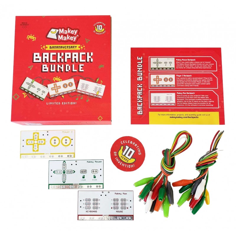 Découvrez le Makey Makey Backpack Bundle, l'accessoire idéal pour enrichir vos créations interactives ! Ce kit vous permet de brancher des cartes supplémentaires à votre Makey Makey (version 1.4 et supérieure) afin d'exploiter pleinement ses fonctionnalités.